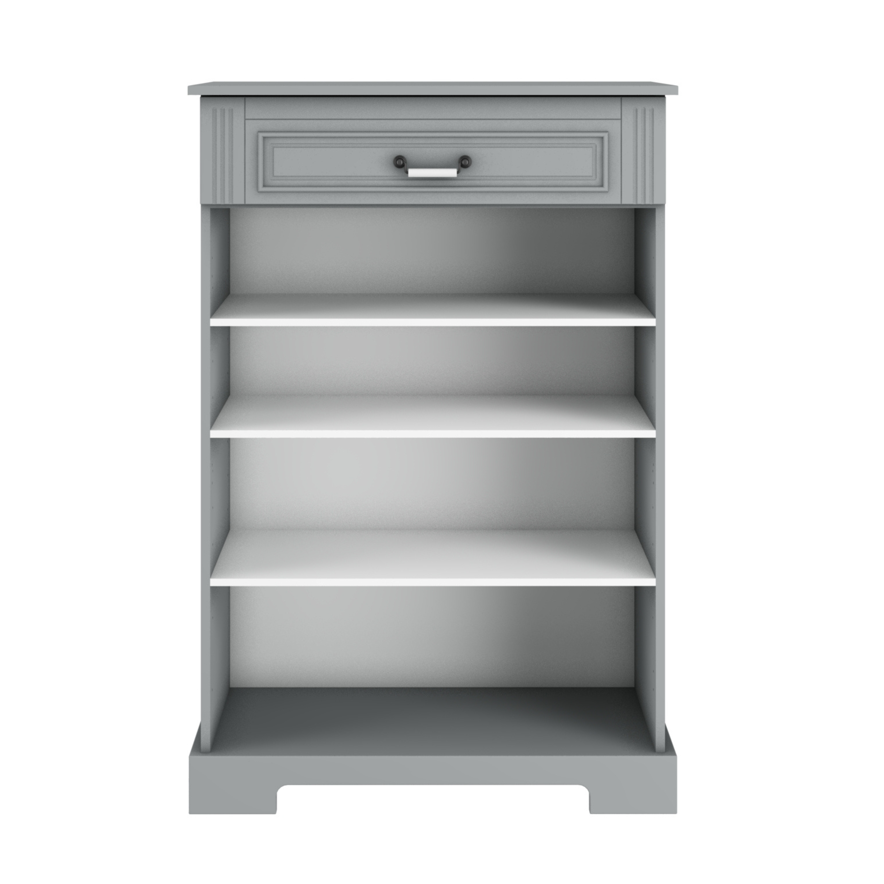 - wewnętrzne półki wykonane z wysokiej jakości płyty laminowanej w kolorze złamanej bieli,