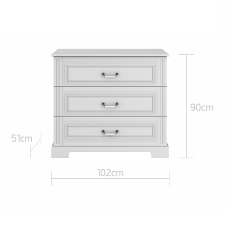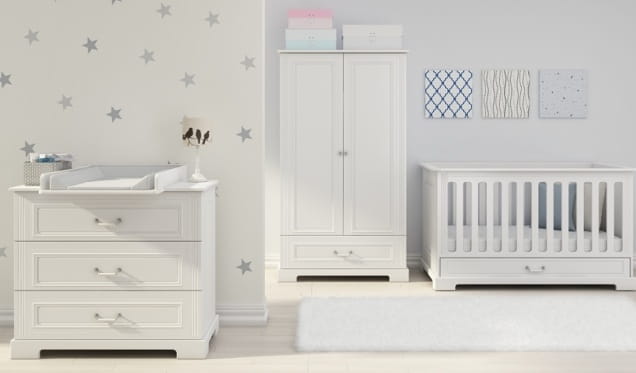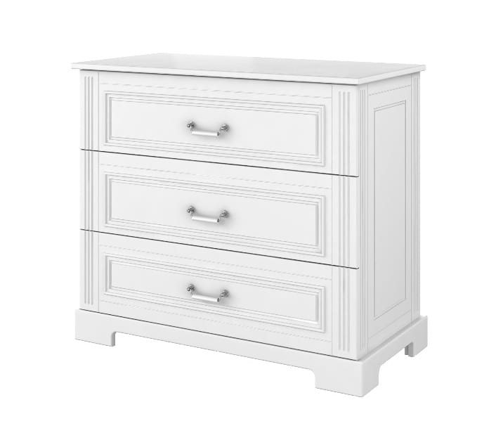 Komoda jest niezbędnym wyposażeniem każdego pokoju dziecięcego. To jeden z najbardziej uniwersalnych mebli, które zawsze, niezależnie od obowiązującej mody, znajdą swoje miejsce w dobrze zaplanowanym pokoiku. Komoda z linii Ines, to połączenie eleganckiego projektu z maksymalną funkcjonalnością. Szerokie, głębokie szuflady, są idealnie dopasowane zarówno do przechowywania ubranek noworodka, jak i większych ubrań dorastającego dziecka. Dla łatwiejszego użytkowania komody zamontowano w nich prowadnice firmy Blum, które są bardzo ciche i wyposażone w bezpieczny dla dzieci system domykający. Komoda z kolekcji Ines, to idealne miejsce do przewijania niemowlaka, dzięki dopasowanemu do niej przewijakowi (z tej samej kolekcji), co więcej, montaż przewijaka nie pozostawia żadnych śladów na komodzie.