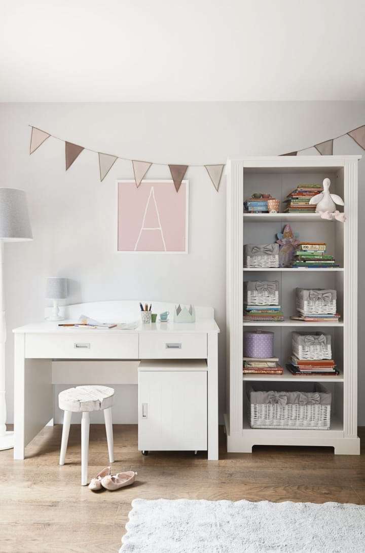 Funkcjonalny regał wyposażony jest w 4 pojemne półki i bez problemu pomieści różne dziecięce akcesoria. Piękne boczne frezy regału ozdobią pokoik każdej dziewczynki, bądź chłopaka. Mebel będzie stał w pokoju dziecięcym wiele lat, dzięki wielu przegrodom będzie niezbędny w wieku szkolnym dziecka. Regulowane półki pomogą w układaniu większych przedmiotów w regale, czy też modnych pudełeczek na drobne akcesoria.