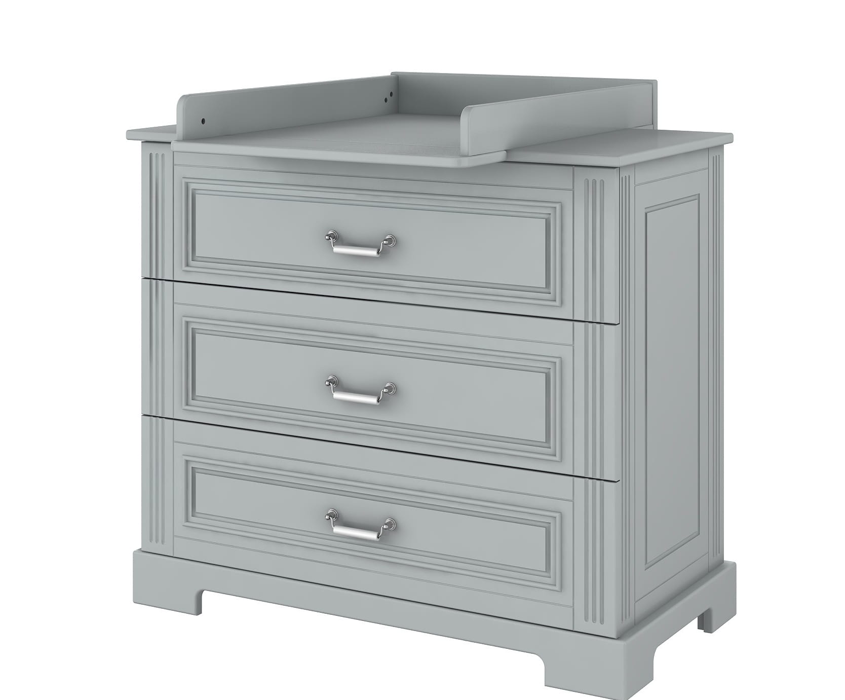 Przewijak wykonany jest z wysokiej jakości płyty MDF lakierowanej na kolor neutralnej szarości.