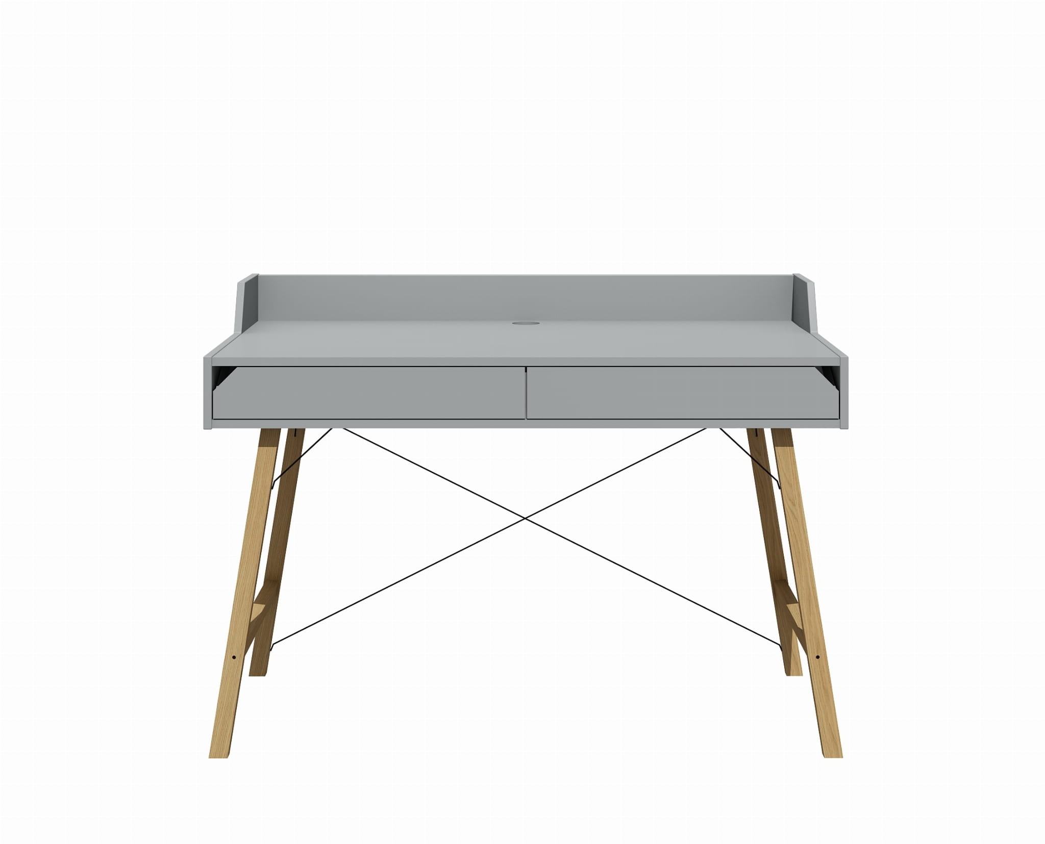 Biurko zaprojektowane z dbałością o szczegóły, proste w formie o minimalistycznym designie. Posiada dwie pojemne szuflady, ograniczenie blatu oraz otwór do przełożenia kabli, dzięki któremu utrzymasz na biurku porządek i unikniesz bałaganu w kablach.