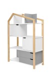 Struktura regału wykonana jest z naturalnego drewna sosnowego.