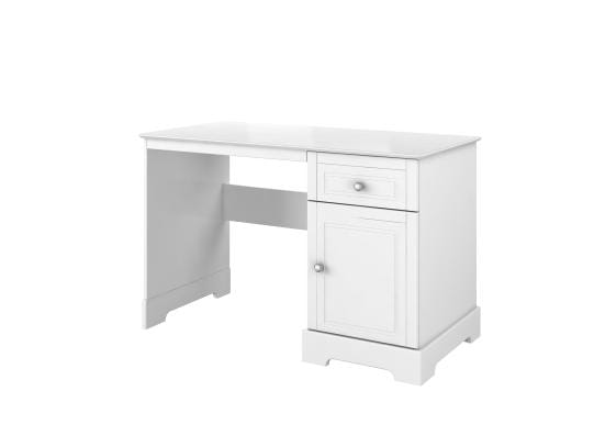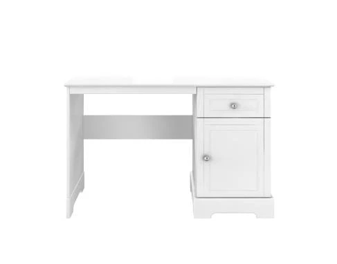 Praktyczne biurko jest uzupełnieniem do kolekcji mebli Marylou. Po prawej stronie wyposażone jest w szufladę oraz szafkę w której znajduje się jedna półka. Jak cała kolekcja Marylou front biurka zdobiony jest pięknymi frezami.