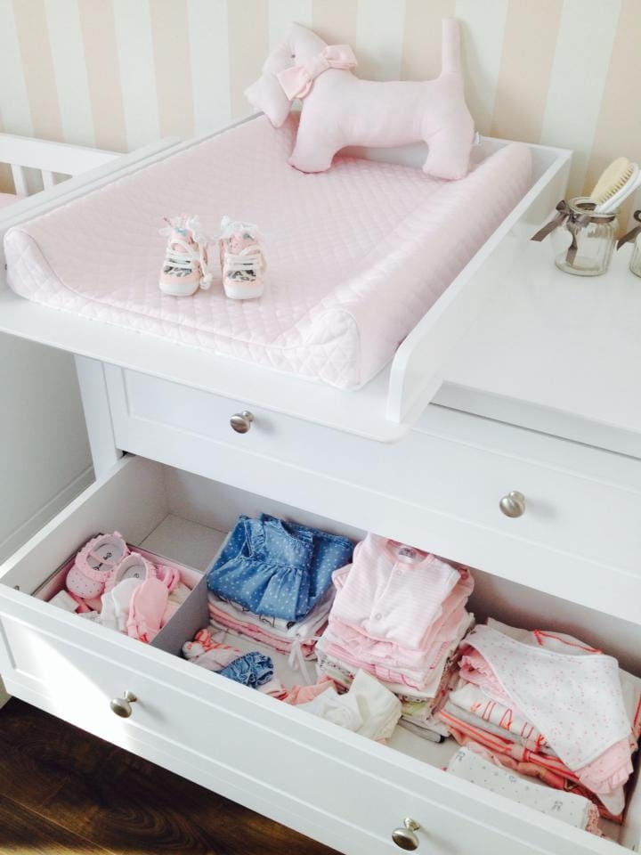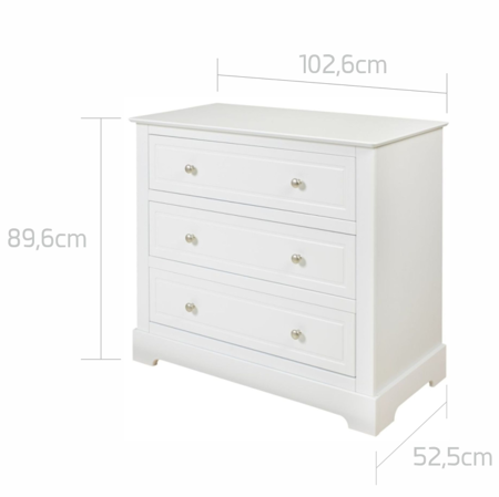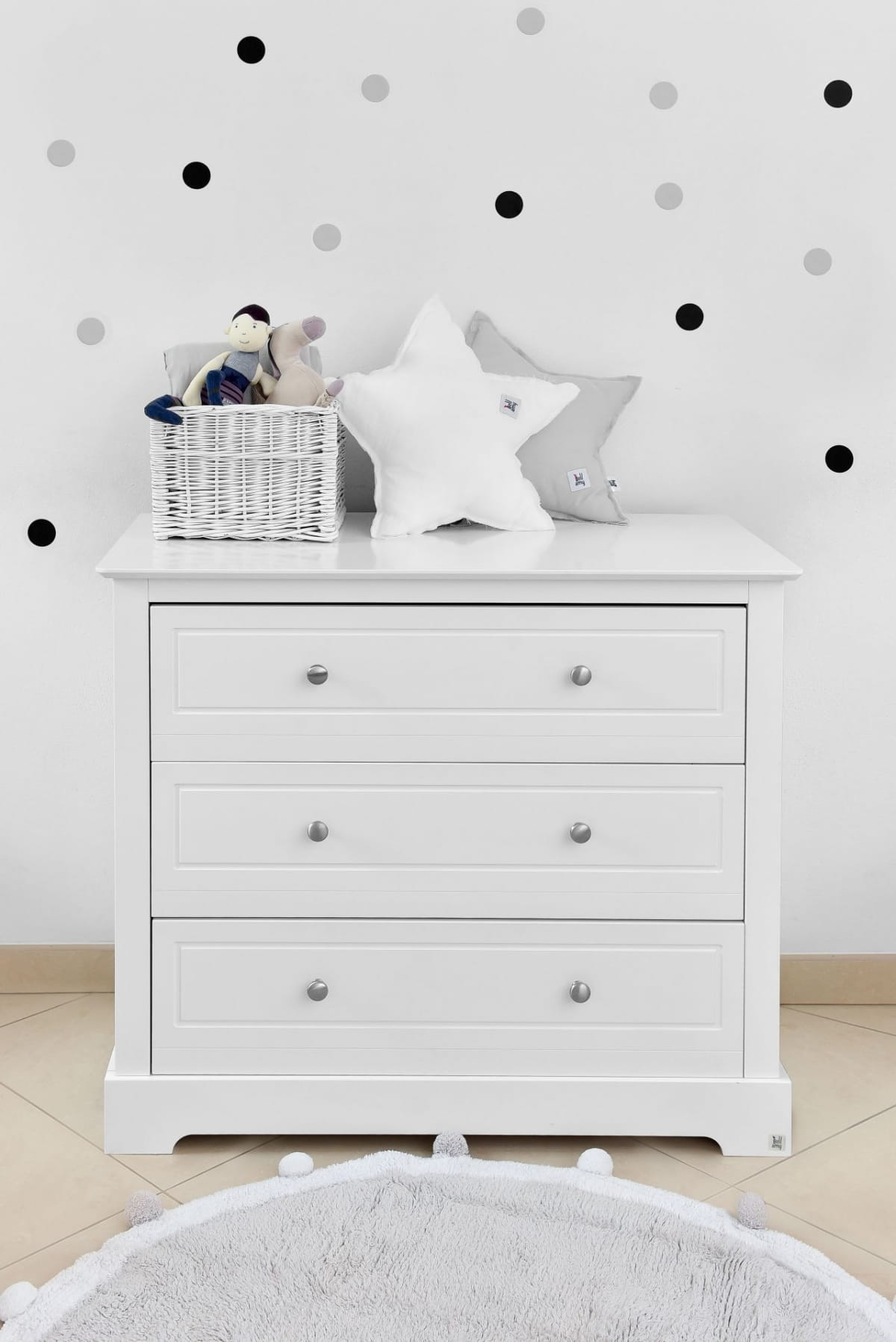 - Trzy pojemne szuflady wyposażone w mechanizm samodomykania z funkcją hamowania zabezpieczający malutkie paluszki przed przytrząśnięciem.