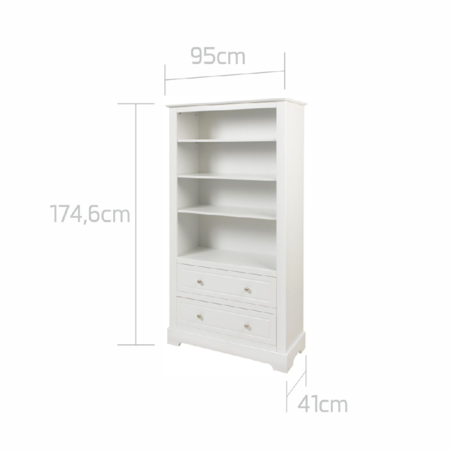 Regał wykonany jest z płyty MDF malowanej na kolor biały oraz płyty meblowej.