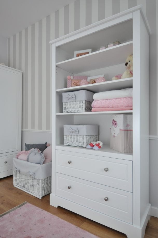Klasyczna i elegancka linia mebli dziecięcych o świeżym i delikatnym wyglądzie. Kolekcja utrzymana jest w jasnej stylistyce uszlachetniona pięknymi, srebrnymi uchwytami.