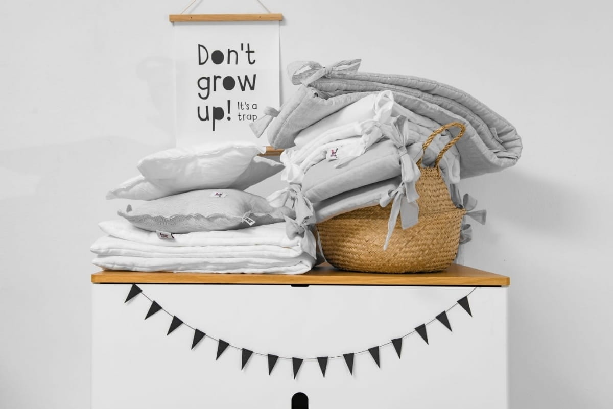 - drabinki łóżeczka wykonane są drewna bukowego polakierowanego na biało