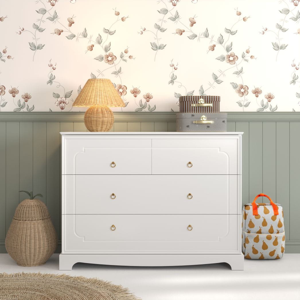 Komoda Royal 4 szuflady to połączenie klasycznego designu z funkcjonalnością, która spełni oczekiwania zarówno dzieci, jak i dorosłych. Dzięki eleganckim detalom i praktycznym rozwiązaniom idealnie wpasowuje się w różne wnętrza, tworząc stylowe i komfortowe miejsce do przechowywania. Doskonała zarówno do pokoju dziecka, rodzeństwa, jak i do sypialni.