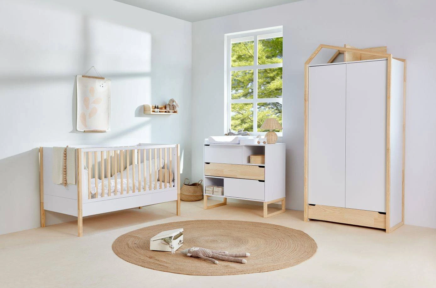 - trzy wyjmowane szczebelki w jednej z ramek łóżeczka umożliwiające swobodne wchodzenie i wychodzenie z łóżeczka,