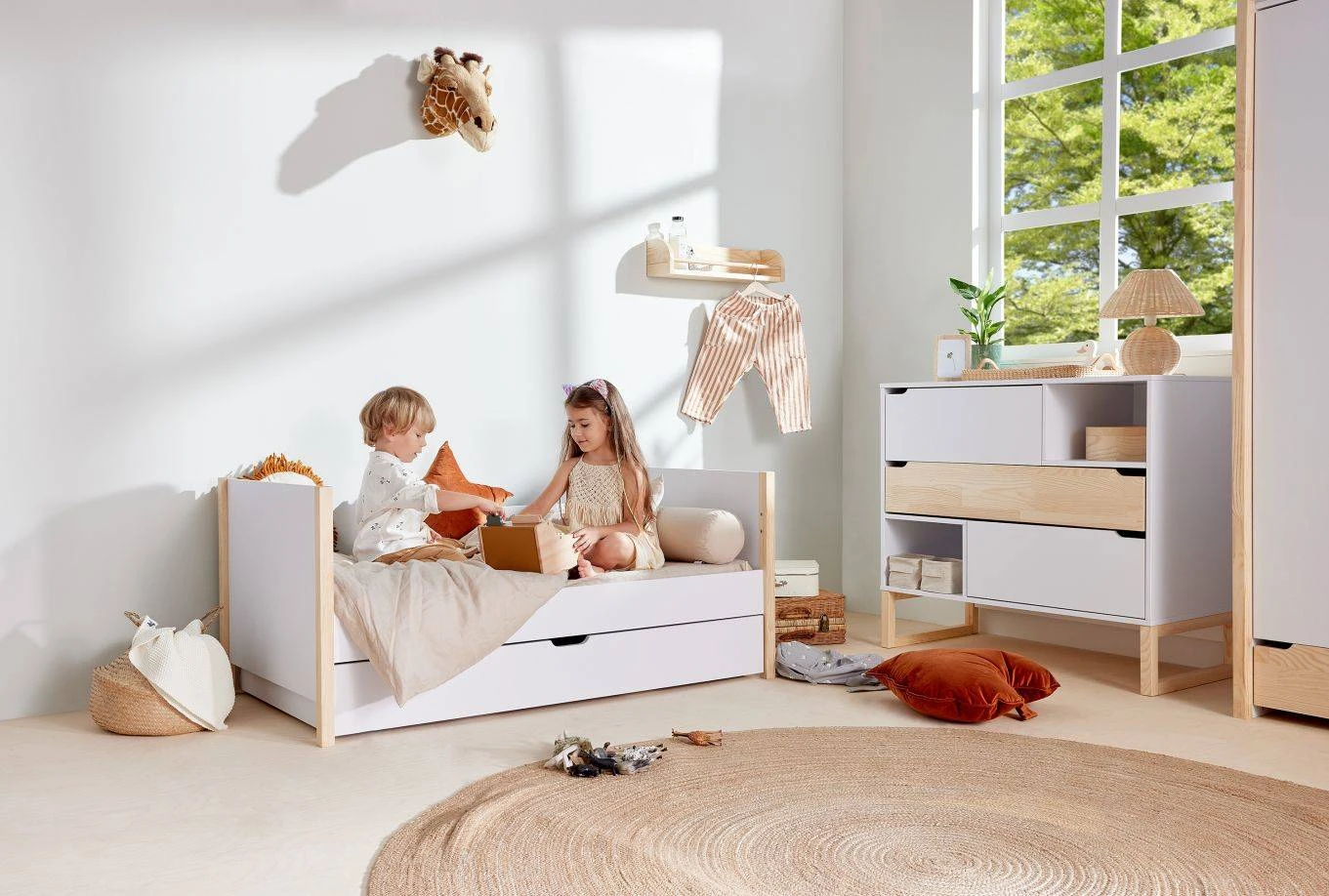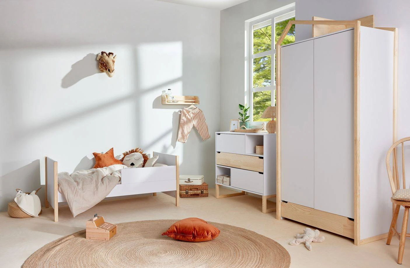 Kolekcja z nutą fantazji. Utrzymana w nowoczesnym, geometrycznym charakterze. Pełna wyrazistych kształtów i dynamicznych kontrastów. Zestaw dla małych odkrywców. Dzieciaków z temperamentem, dla których pokój staje się przestrzenią inspiracji i wyobraźni oraz kreatywnej zabawy.