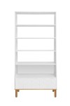 Prosty, geometryczny regał z dolną szufladą typu „push to open”. Idealnie sprawdzi się w pokoiku dziecka jako miejsce do przechowywania i eksponowania książeczek, pudełek z bibelotami, zabawek czy innych niezbędnych w świecie dziecka przedmiotów. Front szuflady może zostać ozdobiony frezowaniem o wzorze geometrycznym lub botanicznym.