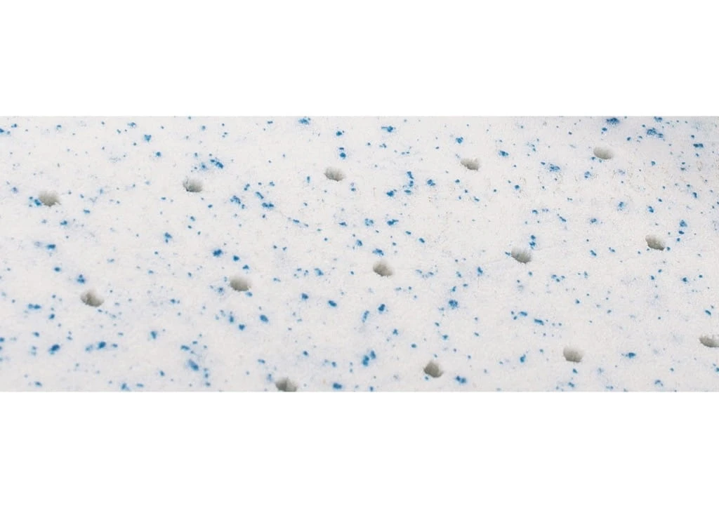 BUDOWA: Blok z pianki poliuretanowej o gr. 5 cm, o podwyższonej twardości i z pionowymi kanalikami cyrkulacyjnymi. Materac obustronnie obłożony płytą z lateksu Blue Ocean o grubości 3 cm. Lateks o zawartości min. 20% naturalnej żywicy hevea z dodatkiem żelu silikonowego. Atest Eco Standard EuroLatex. Pianka lateksowa Blue Ocean to innowacyjny lateks z funkcją obniżania temperatury na powierzchni i we wnętrzu materaca. Używana systematycznie zapobiega powstawaniu potówek oraz stanowi profilaktykę SIDS.