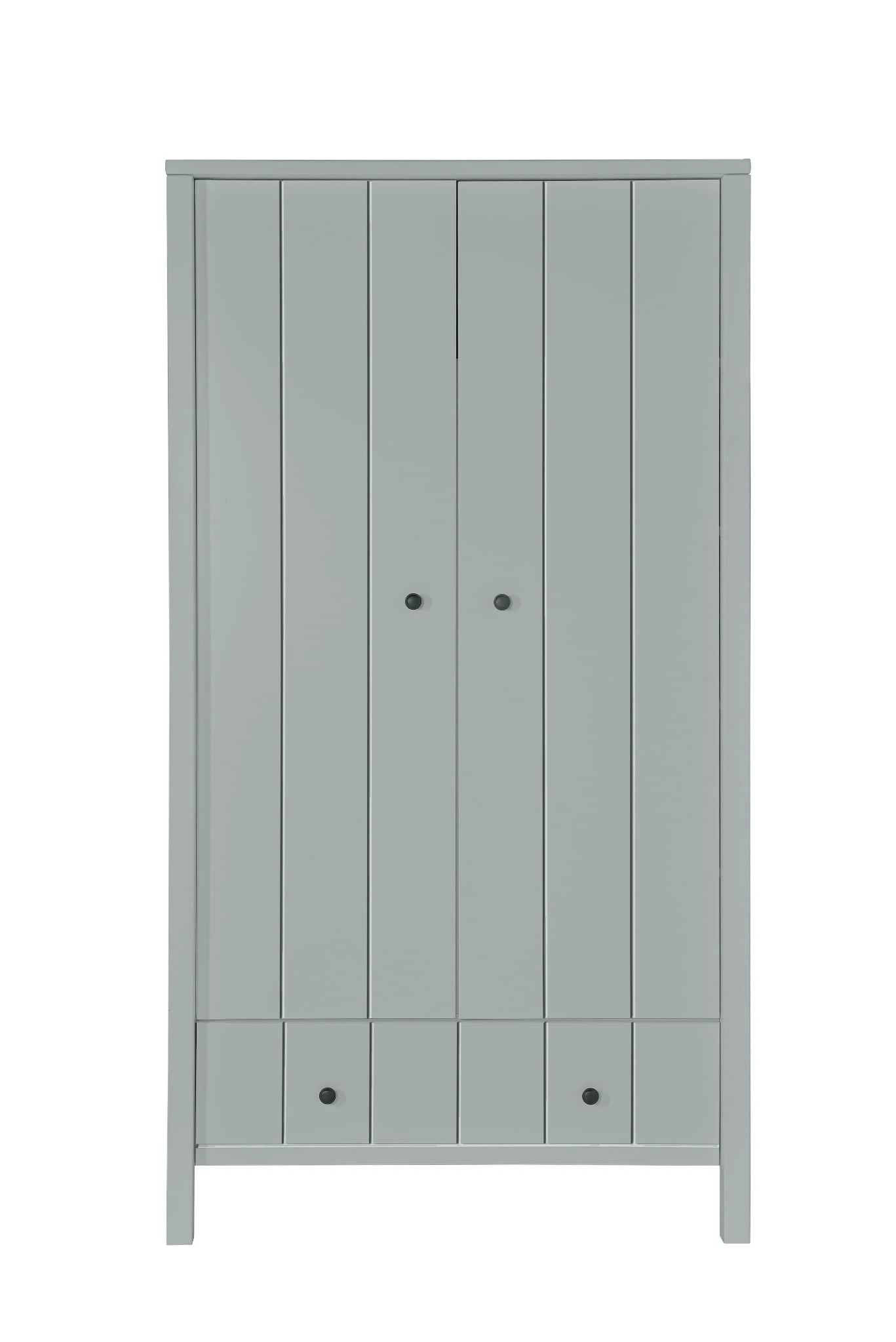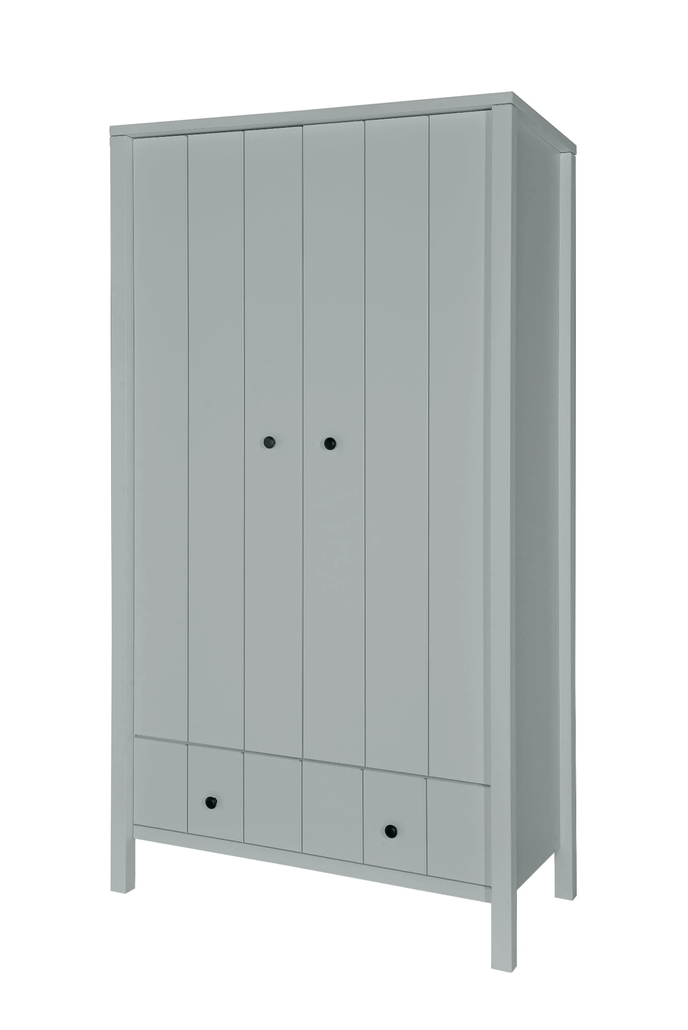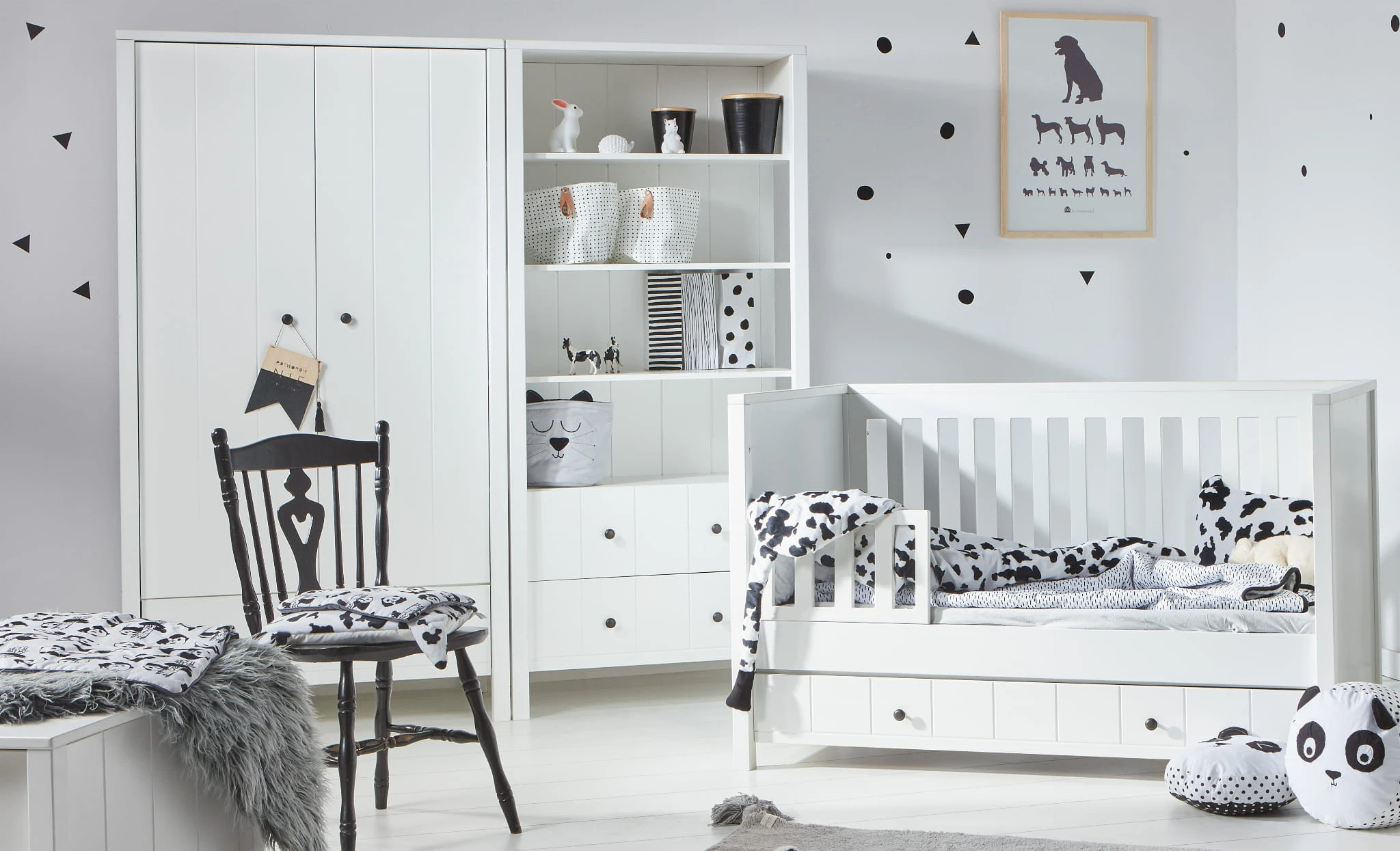 Minimalistyczną kolekcję Allpin przełamują czarne uchwyty. Dla urozmaicenia, na frontach znajdują się pionowe frezy imitujące deski. Połączenie klasycznej czerni i bieli sprawia, że kolekcja pasuje zarówno do pokoju chłopca, jak i dziewczynki, spełni potrzeby niemowlaka i sprosta oczekiwaniom wymagającego nastolatka. Drugą opcją kolorystyczną jest bardzo elegancka gołębia szarość. Wystarczy zmienić detale, by cieszyć się kolekcją Allpin przez lata. Meble wyróżnia solidna konstrukcja – kwadratowe nogi to fragment zewnętrznej deski, która zapewnia stabilność, ponieważ biegnie przez całą wysokość. Meble pomalowane są bezpiecznymi farbami, dlatego możemy je zamówić także do pokoju alergika.