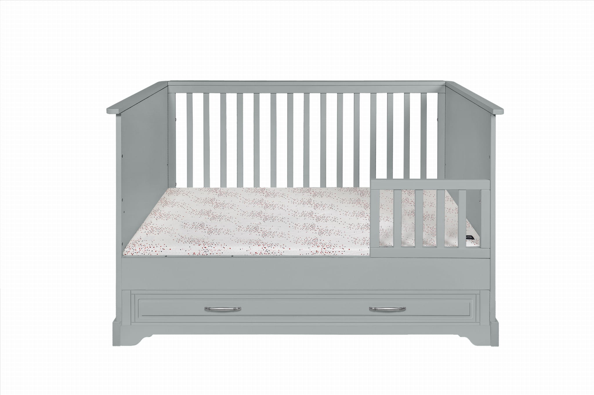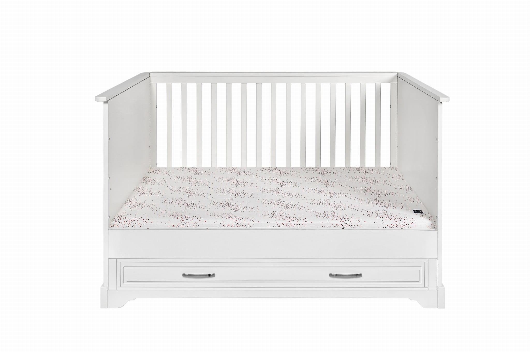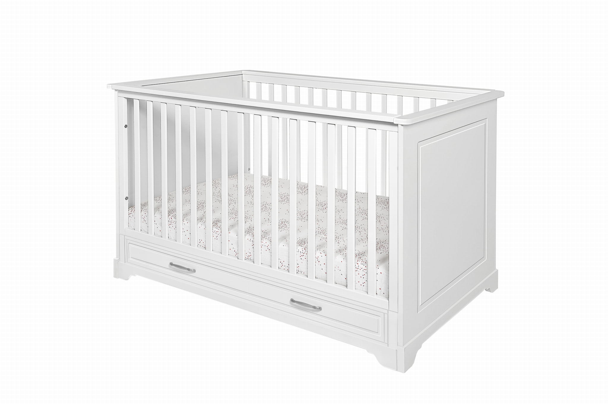 • w zestawie barierka ochronna zabezpieczająca przed wypadaniem po zmianie łóżeczka na tapczanik, barierkę można zamontować po prawej lub lewej stronie łóżeczka
