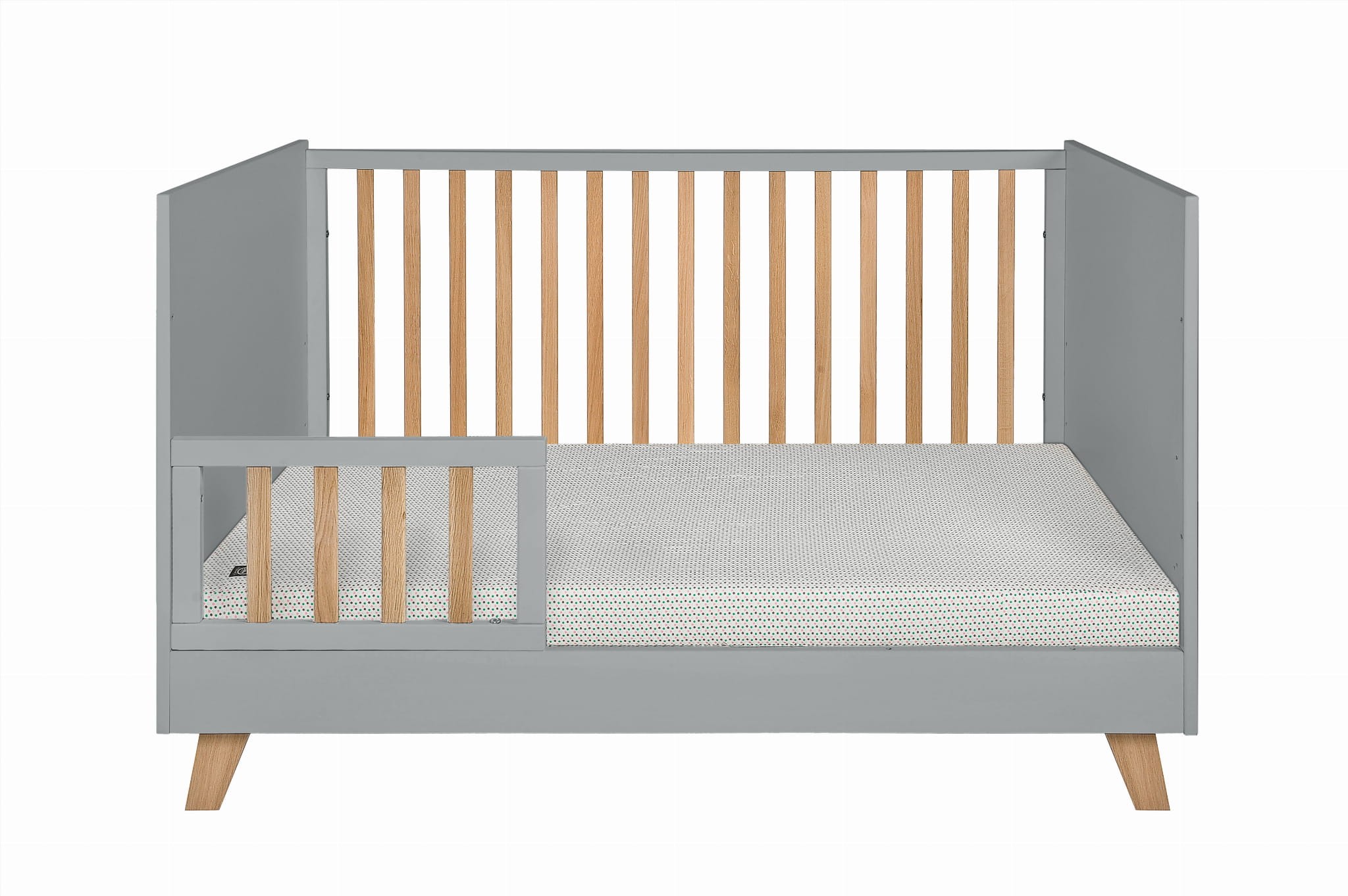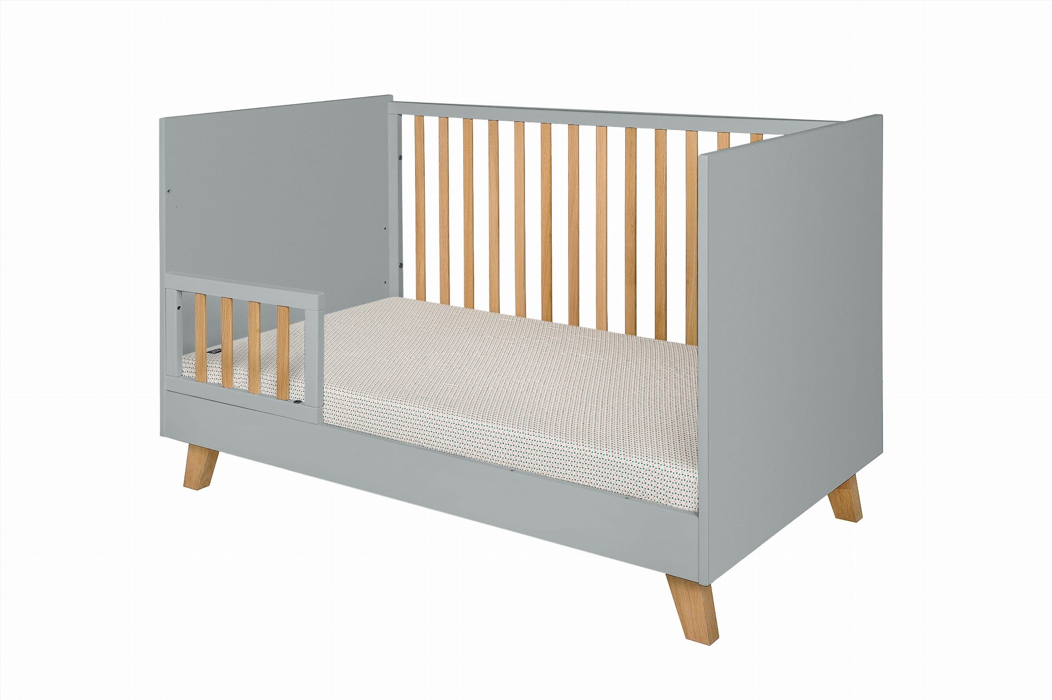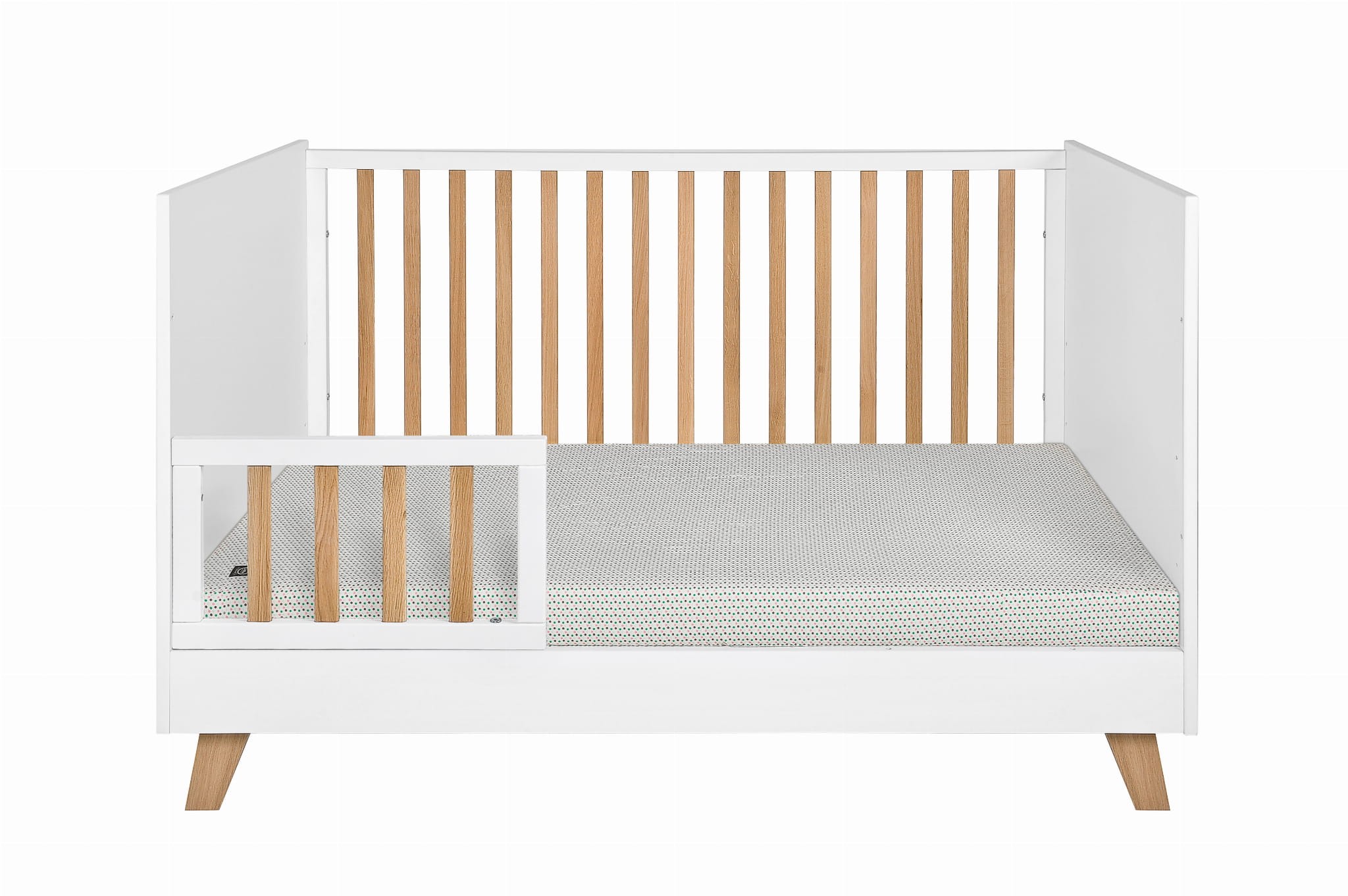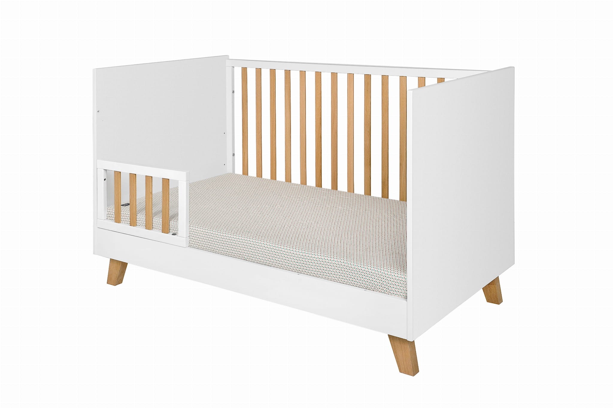 • w zestawie barierka ochronna zabezpieczająca przed wypadaniem po zmianie łóżeczka na tapczanik, barierkę można zamontować po prawej lub lewej stronie łóżeczka