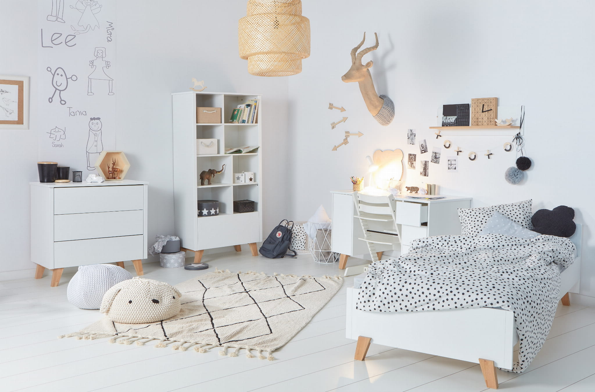 Kolekcja mebli Zara łączy styl minimalistyczny z nowoczesnym, to uniwersalna i praktyczna propozycja zarówno dla malucha jak i nastolatka. Ponadczasowość i trwałość kolekcji sprawia, że poszczególne elementy wyposażenia posłużą na lata, współgrając z nowymi dodatkami. Biel, rozświetlająca pomieszczenie lub elegancka szarość , która nie wychodzi z mody i trwałe, ale lekkie materiały zapewniają komfort. Dębowe nóżki umożliwiają swobodne odkurzanie i wyjmowanie zabawek, które spadły pod meble, a jednocześnie tworzą niezapomniany klimat dzieciństwa pachnącego drewnem. W kolekcji zara zrezygnowaliśmy z uchwytów, wyposażona jest w ciche prowadnice z systemem zamykania dotykowego „push to open” czyli „naciśnij aby otworzyć”. Naturalne materiały zapewniają bezpieczeństwo użytkownikom.