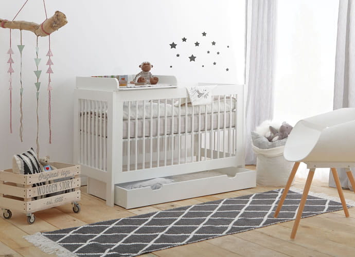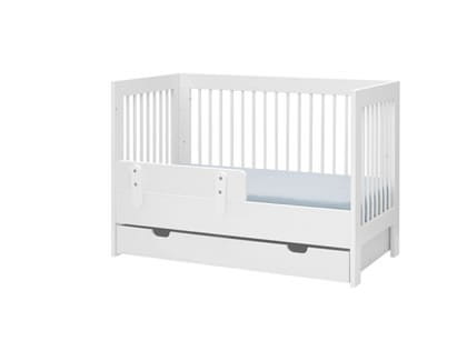Basic to nowa kolekcja łóżeczek niemowlęcych skierowana dla miłośników klasycznych kształtów, którzy nie planują urządzania całego pokoju dziecka, a potrzebują tylko łóżeczko. Łóżeczko dostępne w rozmiarze 120x60 cm, posiadają wyciągane szczebelki, a dzięki przemyślanej konstrukcji jeden z boków można zdemontować, dzięki czemu będzie pełniło funkcję zamkniętego z trzech stron łóżka. Do łóżeczka można dokupić nakładany przewijak (dedykowane do rozmiaru 120x60) oraz szufladę i barierki z kolekcji Moon (dopasowane wymiarowo oraz kolorystycznie).