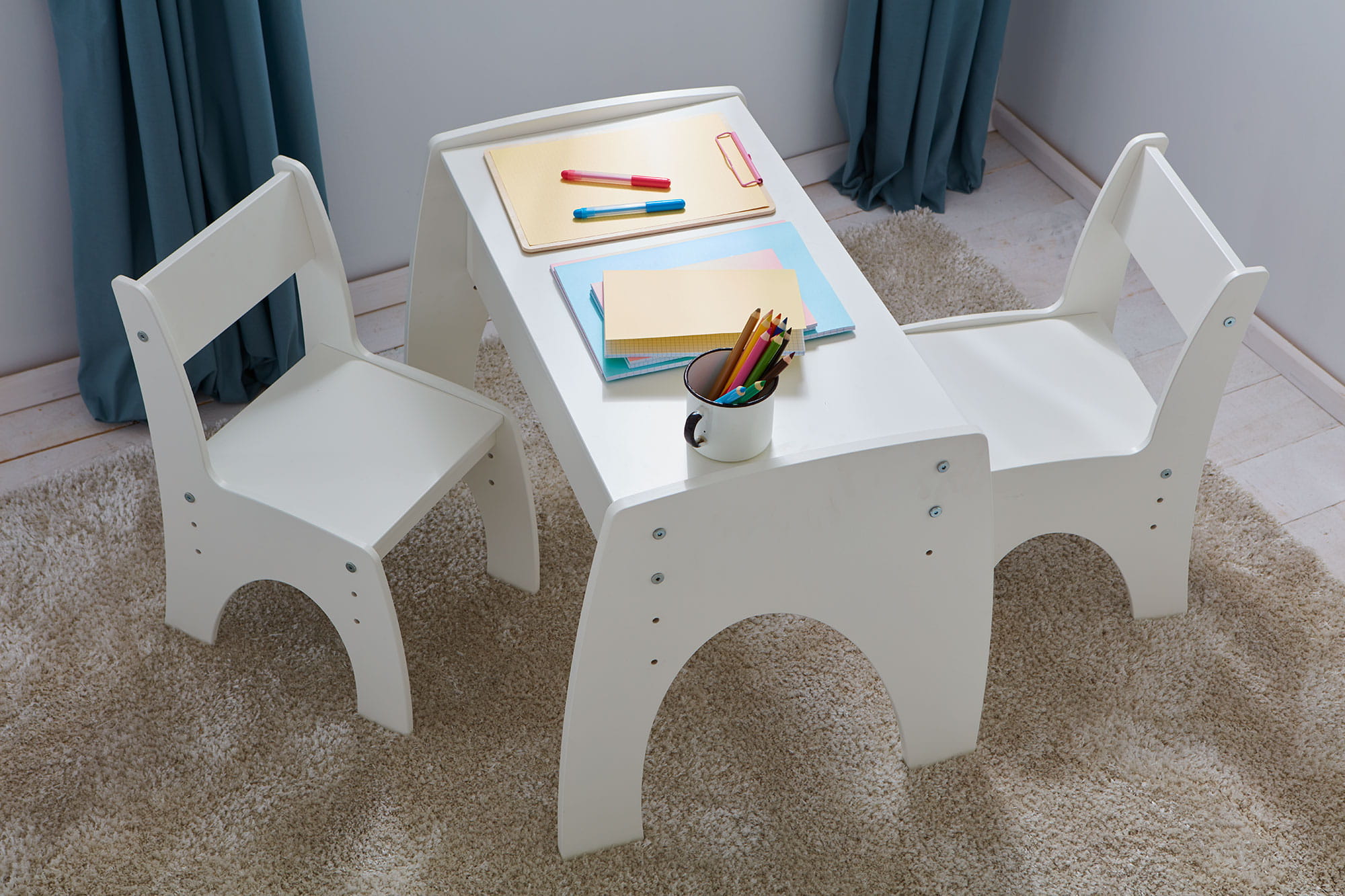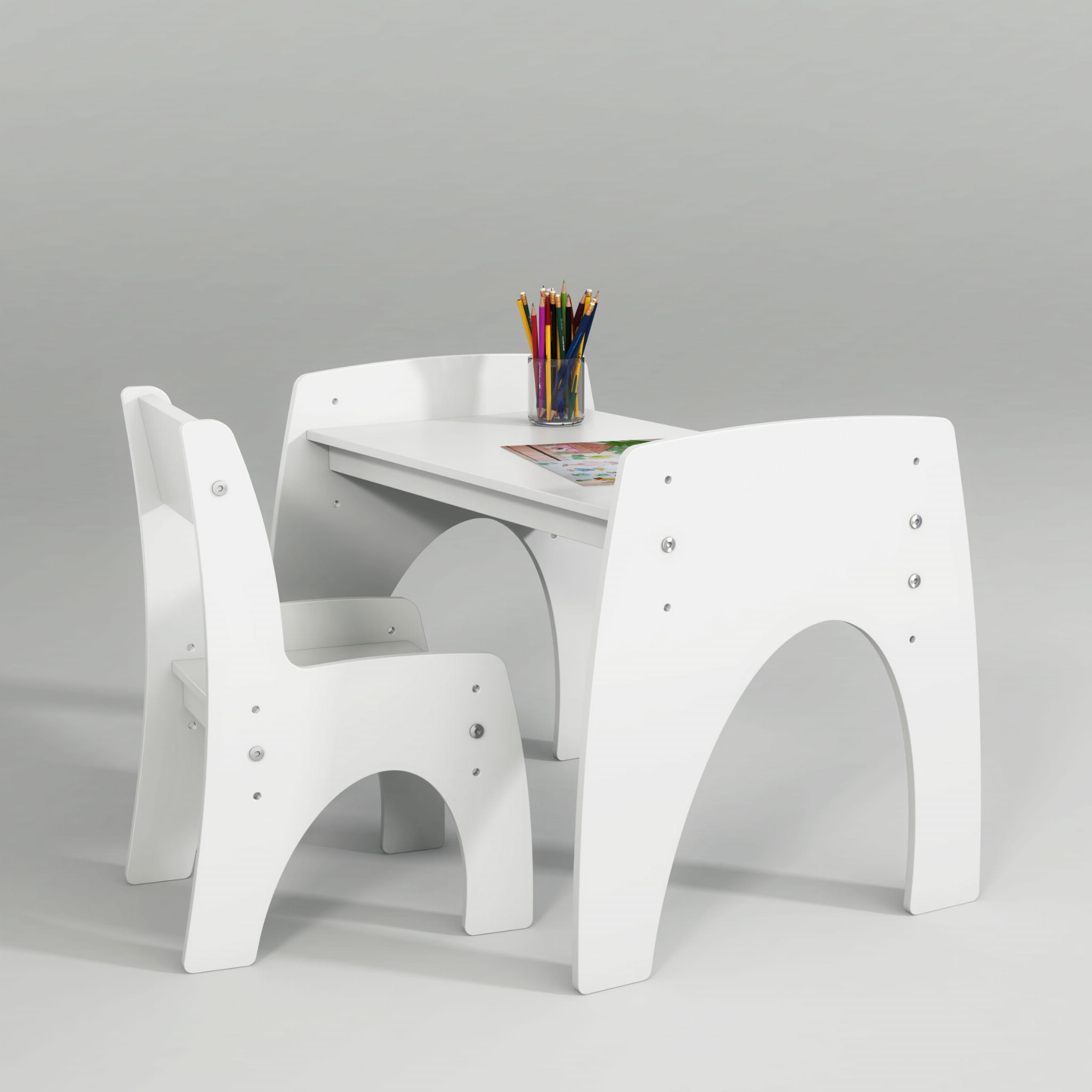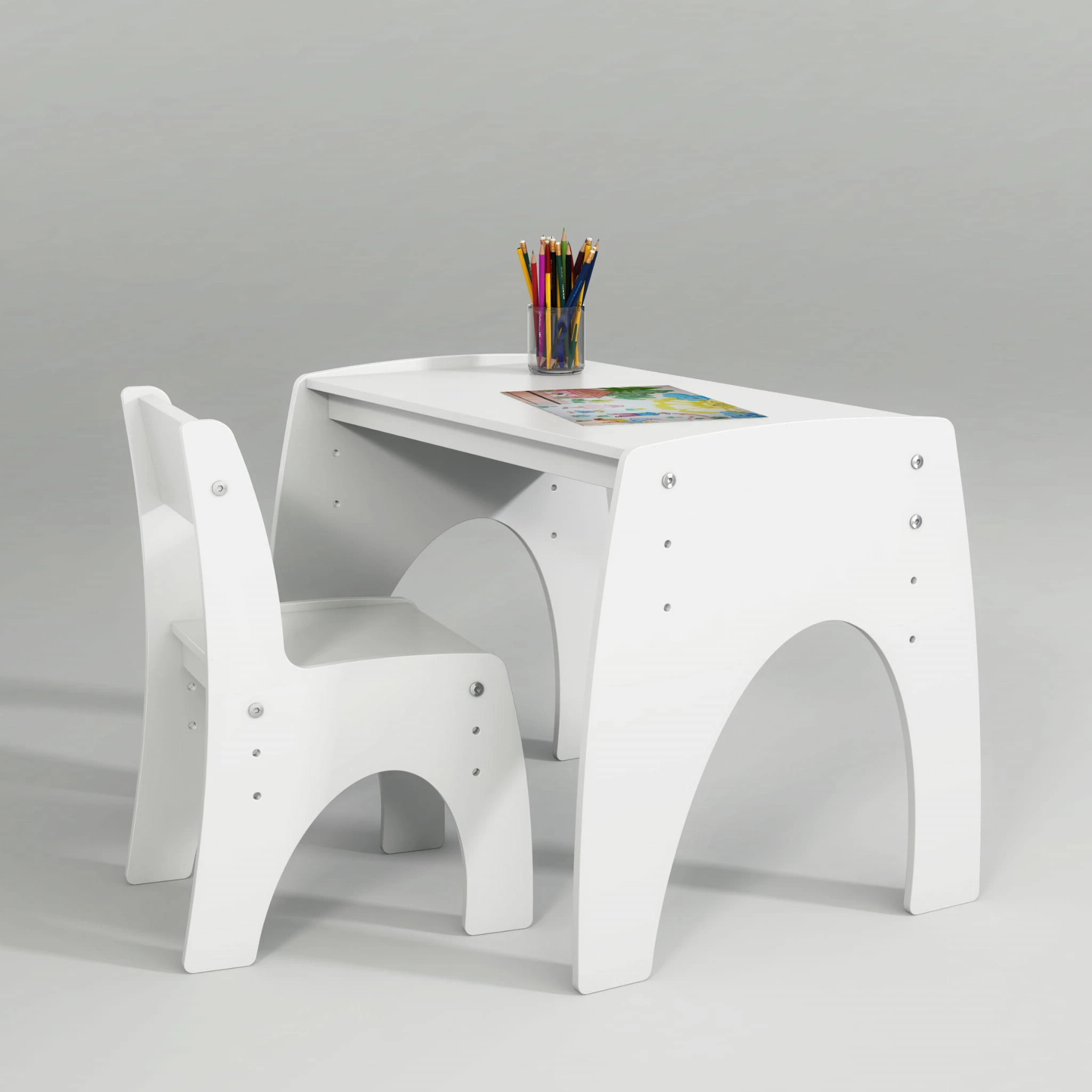 Stolik z regulowaną wysokością siedziska - 3 poziomy. Materiał - malowana płyta MDF
