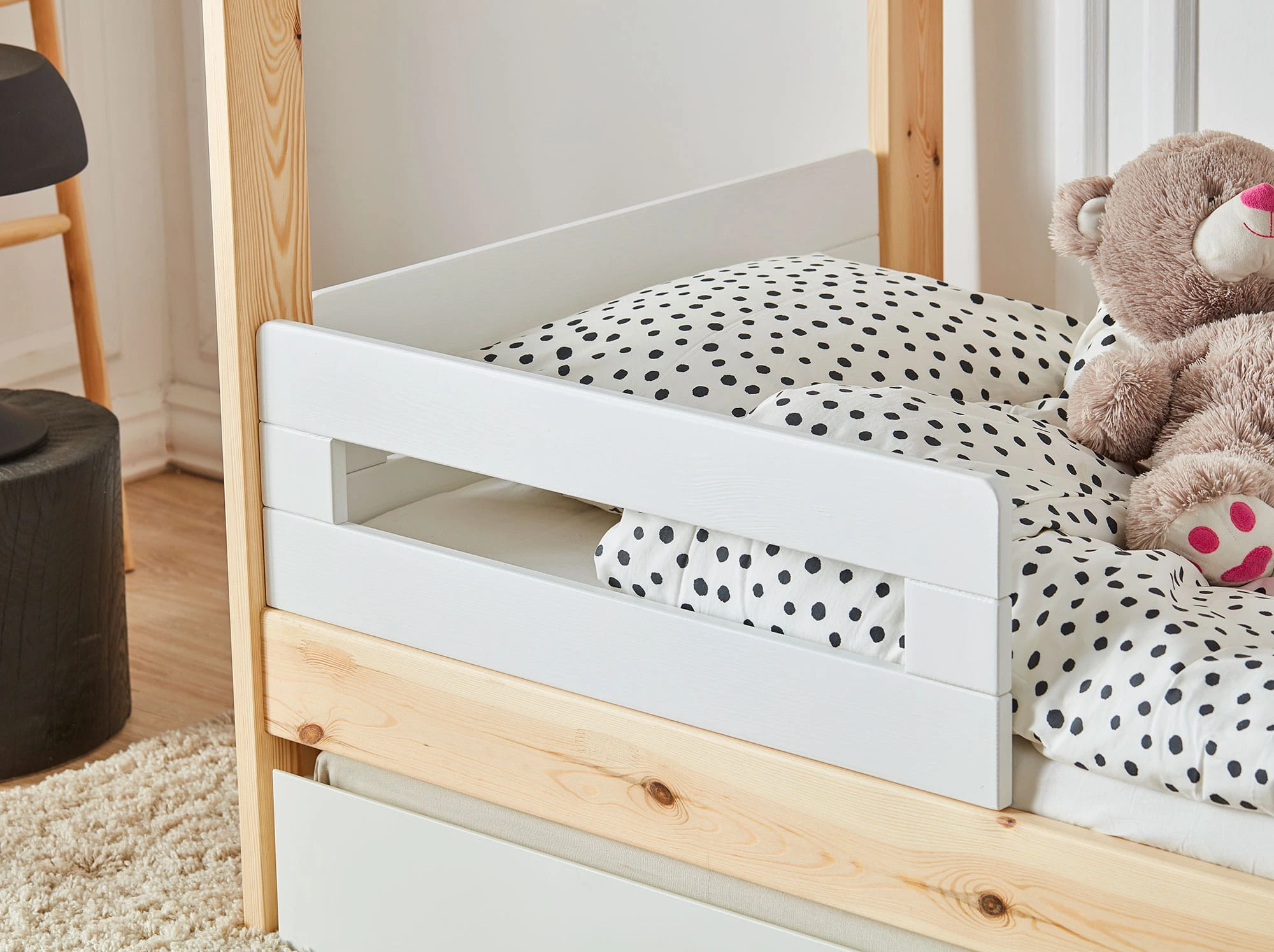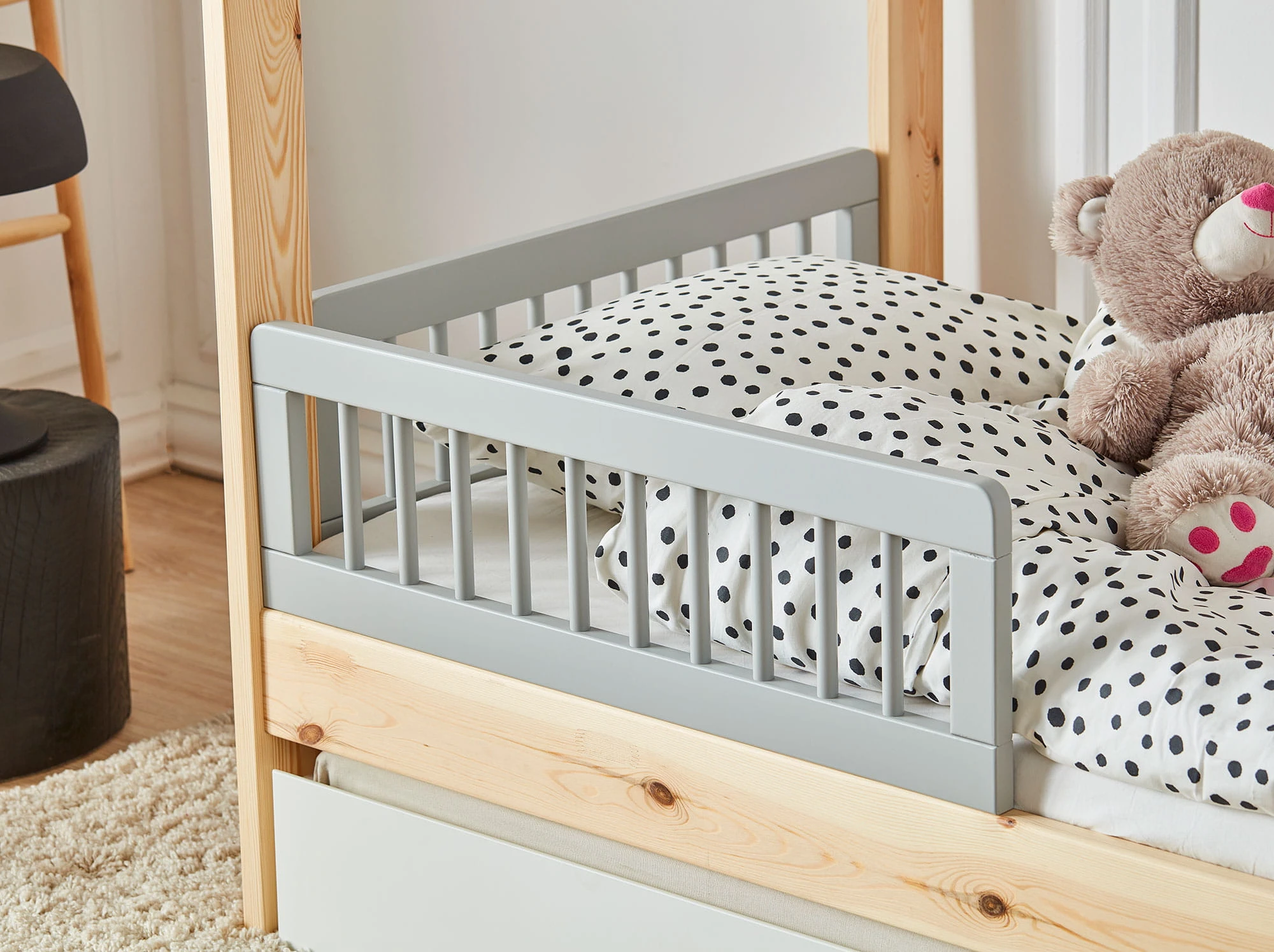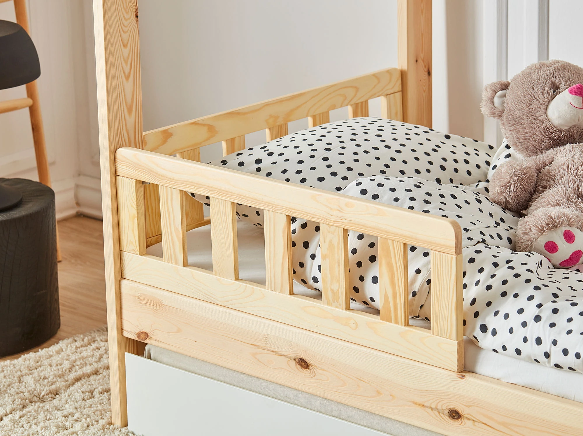 Do łóżka dedykowane są również cztery rodzaje barierek, w różnych stylach i kolorach. Barierki