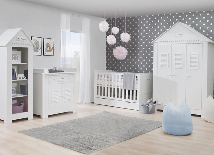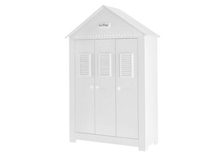 Bardzo pojemna szafa trzydrzwiowa z kolekcji Marsylia MDF wyposażona jest w charakterystyczny dla kolekcji Marsylia dekor La Plage (fr. plaża). Wewnątrz posiada trzy półki oraz drążek na wieszaki (przez szerokość dwojga drzwi) oraz cztery półki (przez szerokość jednych drzwi). Szafa przypomina francuski domek plażowy i posiada charakterystyczny wieniec górny w kształcie spadzistego dachu. Drzwi posiadają wysokiej jakości system cichego zamykania.