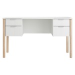 Szykowne biurko z kolekcji Miloo przeznaczone jest dla dziecka w wieku przedszkolnym, dziecka rozpoczynającego naukę w szkole jak i dla nastolatka. Biurko wykonane jest z malowanej płyty MDF, płyty laminowanej (korpus, elementy wewnętrzne) oraz z litego drewna bukowego(nóżki). Biurko zostało pomalowane bezpiecznymi, atestowanymi farbami, zgodnymi z normą EN 71-2. Posiada cztery pojemne szuflady, wyposażone w wysokiej jakości prowadnice z hamulcem i samodotykiem.