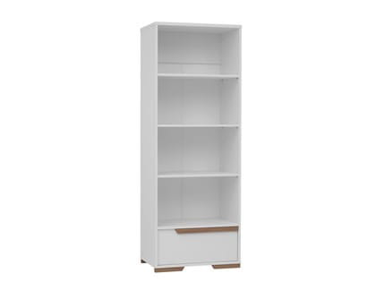 Regał otwarty z kolekcji Snap posiada 4 półki oraz jedną szufladę - jest ona wyposażona w wysokiej jakości prowadnicę z hamulcem i samodotykiem.