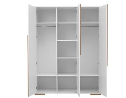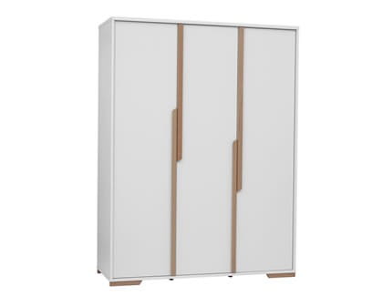 Bardzo pojemna szafa 3-drzwiowa z kolekcji Snap z systemem cichego zamykania wysokiej jakości. Wewnątrz 2 przegrody pionowe oraz różne możliwości aranżacji wnętrza szafy - 4 półki w środkowej części oraz np. 2 półki i drążek z jednej strony i 2 półki i drążek na ubrania z drugiej strony - w standardzie 4 półki do środkowej części oraz 4 półki i 2 drążki na ubrania do części zewnętrznych - możliwość dokupienia dodatkowych półek (maksymalnie 4 sztuki). Środkowe drzwi mogą zostać zamontowane zarówno z lewej jak i z prawej strony.
