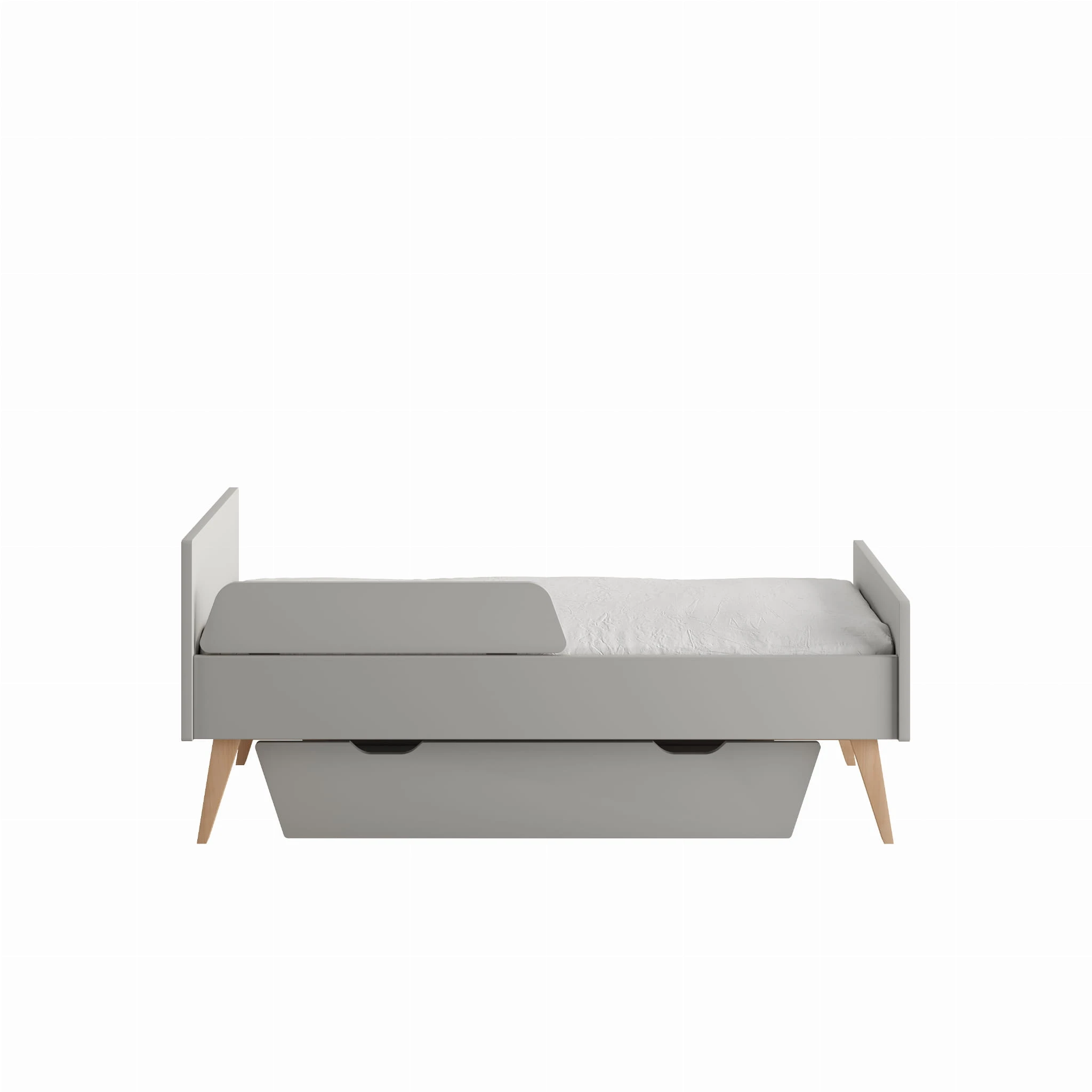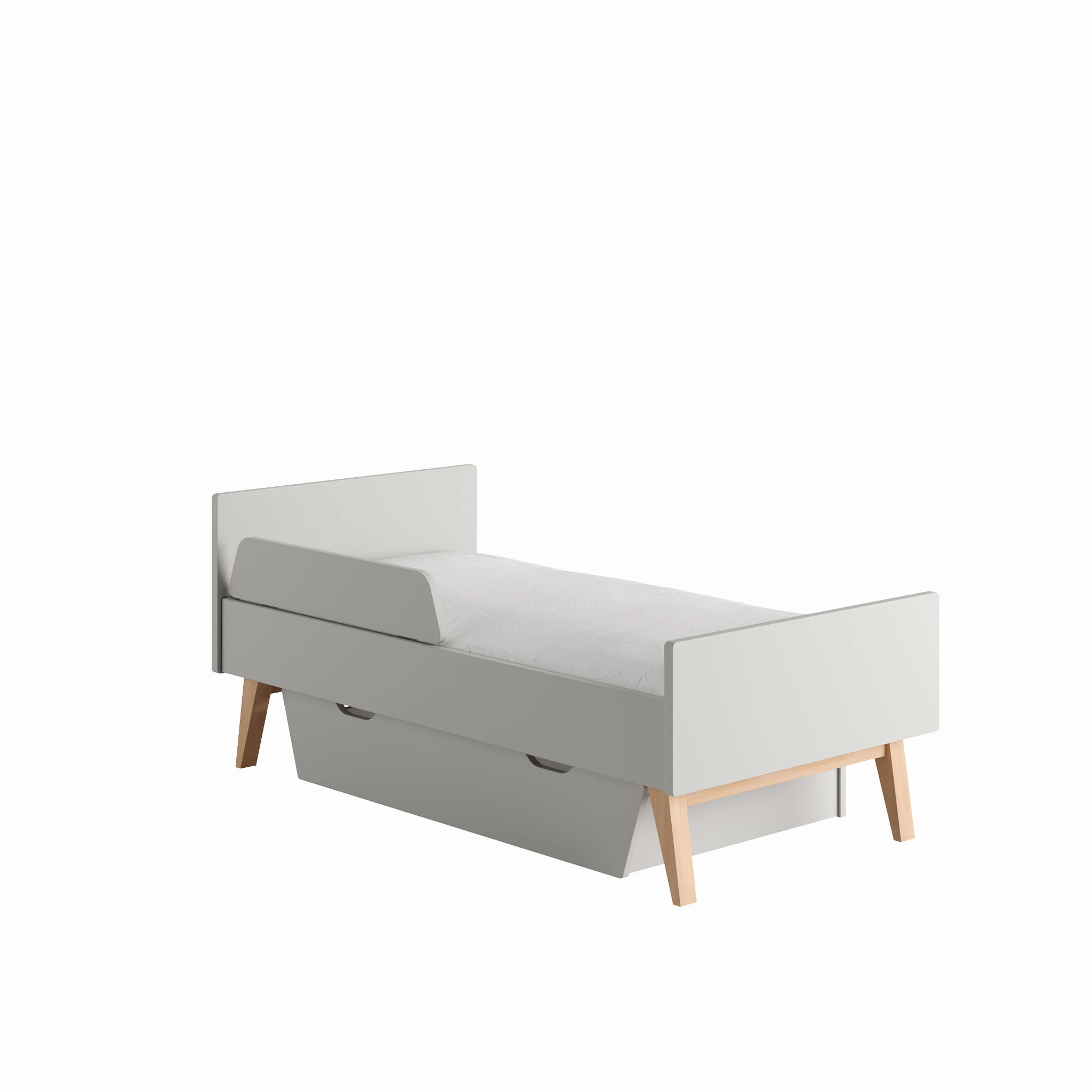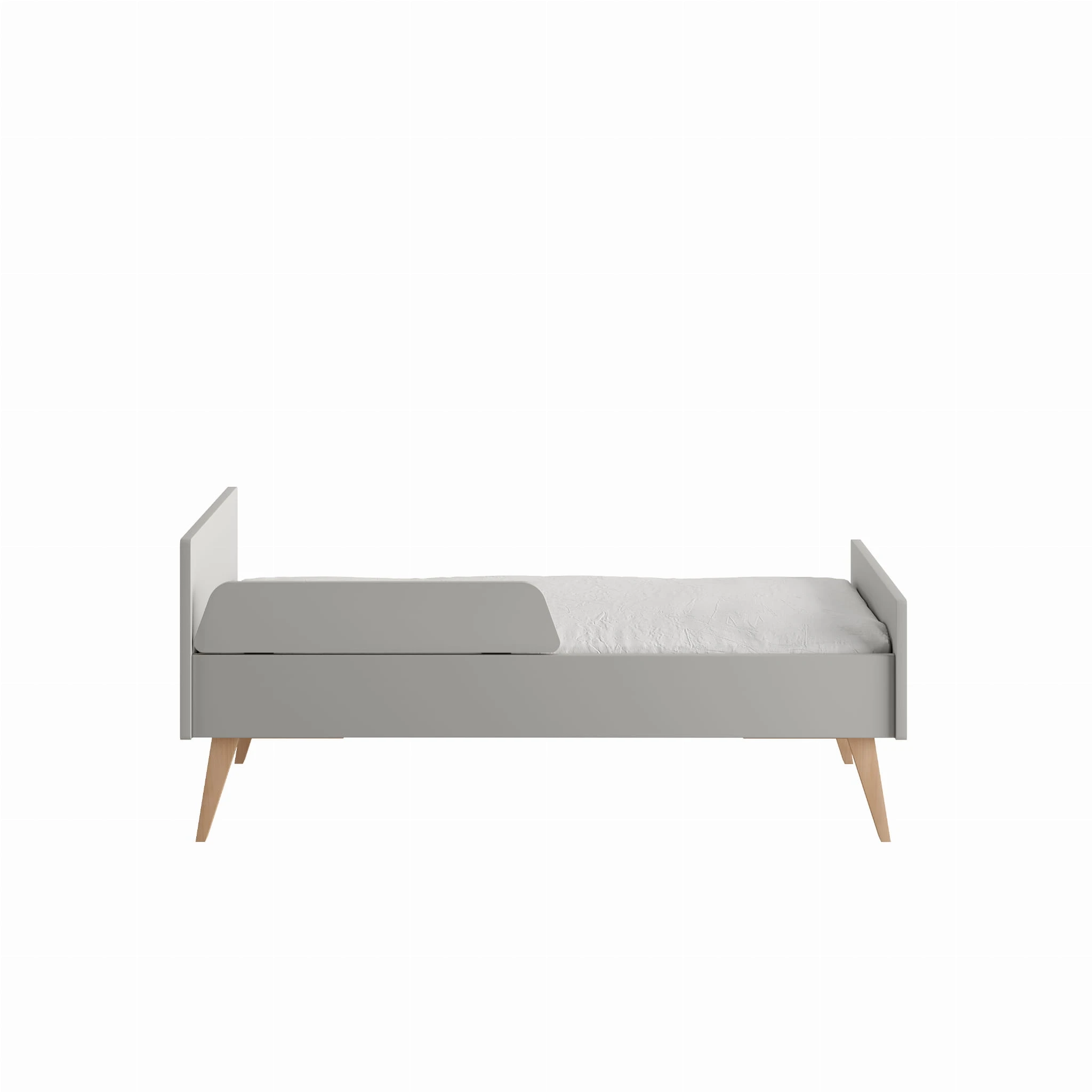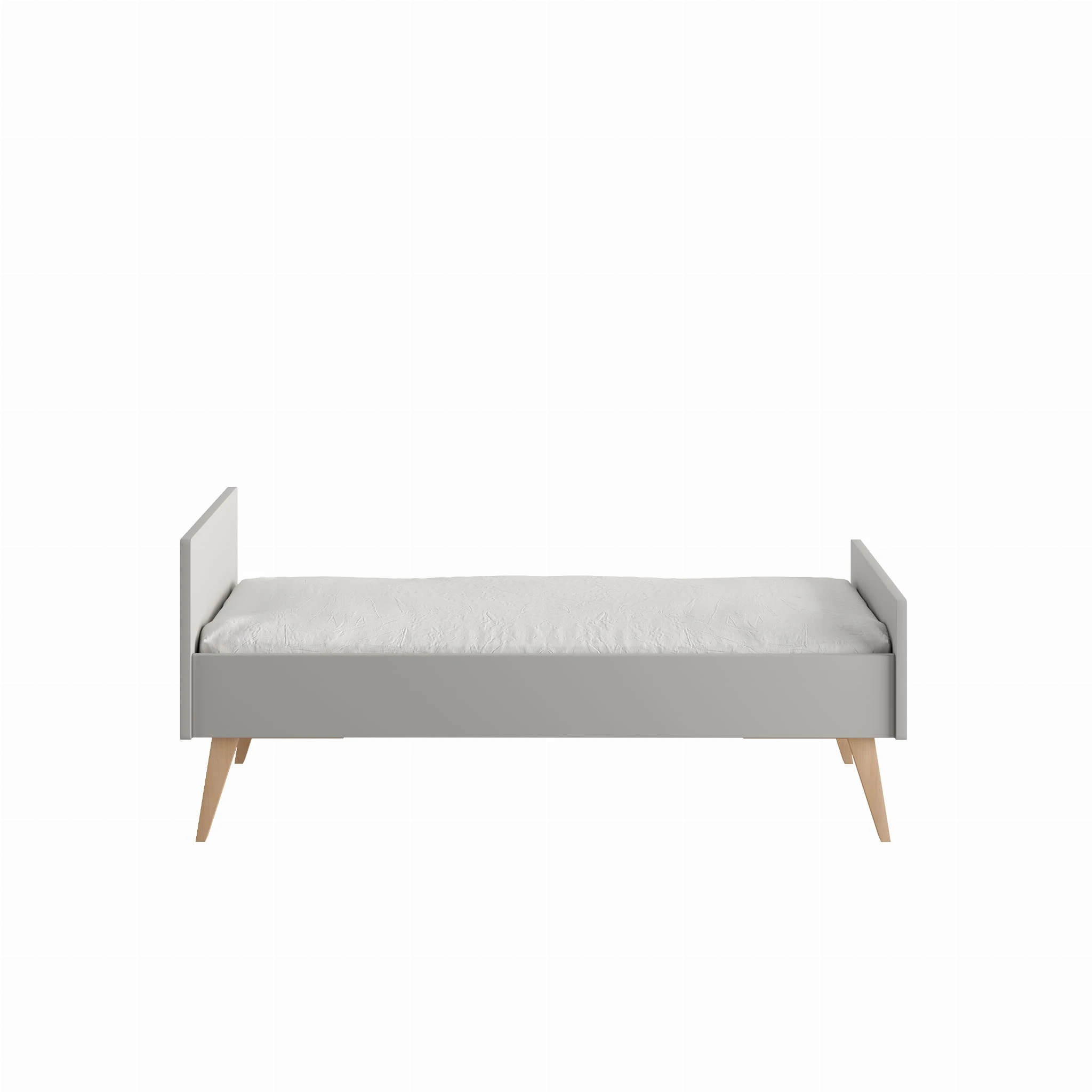 Łóżeczko pod materac 140x70cm z kolekcji Swing z funkcją przekształcenia w tapczanik dla większego dziecka. Posiada trzy poziomy wysokości materaca oraz dwa wyciągane szczebelki.