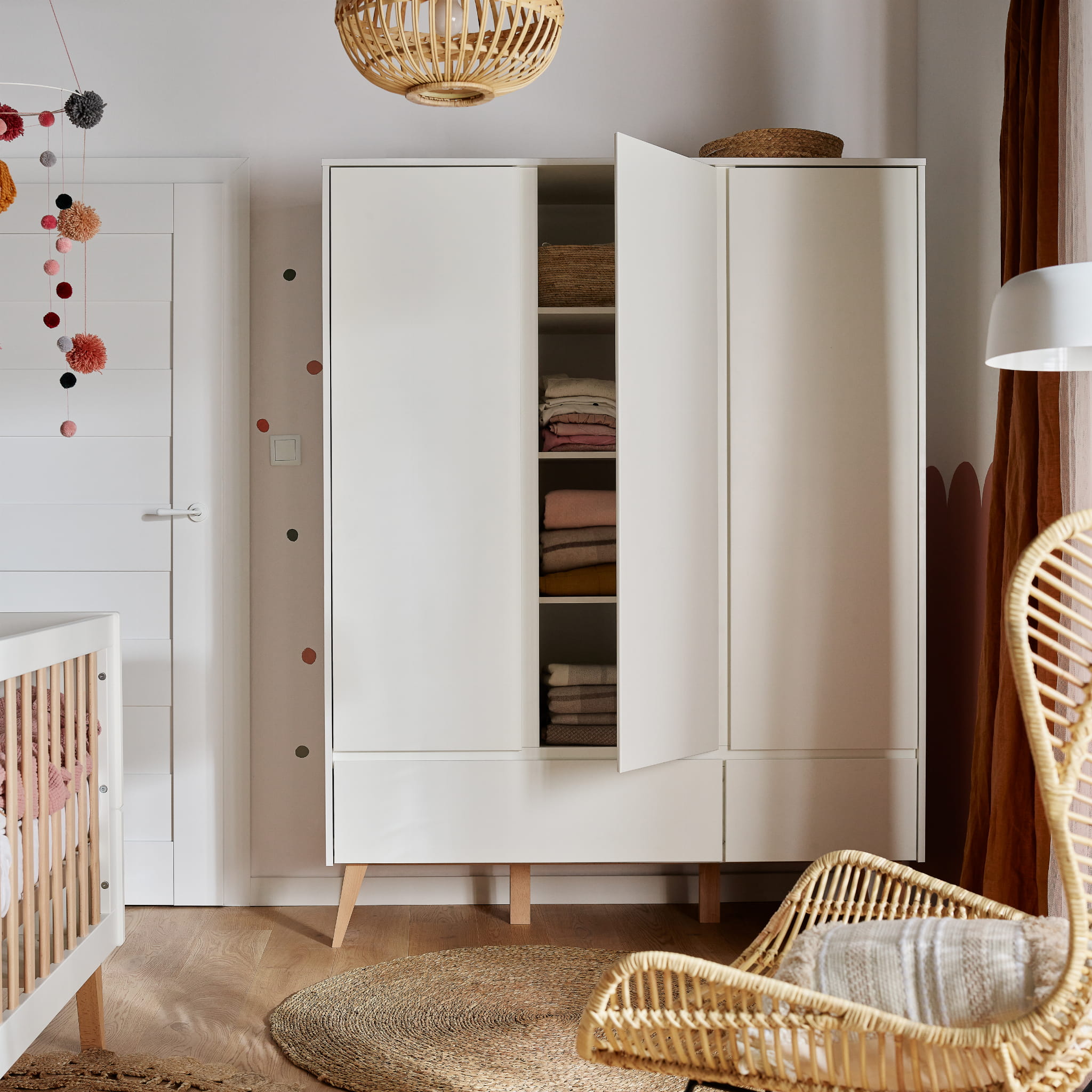 Połącznie klasycznej bieli z naturalnymi drewnianymi nóżkami tworzy wrażenie ciepła i przytulności. Nowe, oryginalne bryły pozwalają na dużo możliwości aranżacji, która nie musi kończyć się w pokoju dziecięcym. Komody i regały z tej kolekcji doskonale sprawdzą się w dorosłych wnętrzach. Kolekcja rośnie razem z dzieckiem, a bogaty wybór brył pozwala na użytkowanie jej przez wiele lat.