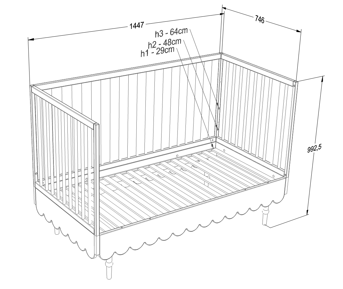 Niezwykle urokliwa łóżeczko w stylu retro. Posiada 3 poziomy regulacji materaca, dodatkowo jedna z ramek bocznych posiada 3 wyjmowane szczebelki aby umożliwić już starszemu dziecku samodzielne wychodzenie z łóżeczka. Łóżeczko 70 x 140 cm wyposażone jest w dodatkowe elementy, które umożliwiają konwersję na łóżeczko dla starszego dziecka. Zabezpieczają one również dziecko przed wypadaniem. Do łóżeczka pasuje materac o wymiarach 70×140 cm.