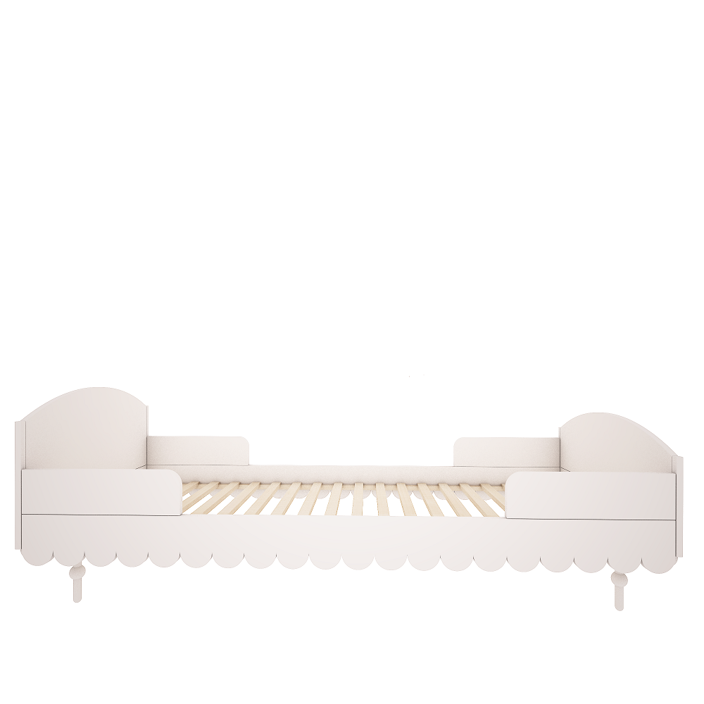 Niezwykle urokliwe łóżko w stylu retro. Odległość od podłogi do góry boku to 37cm. Listwy boczne można demontować - nie są one integralną częścią łóżka. Do łóżka pasuje materac o wymiarach 90 x 200 cm, rekomendowana wysokość materaca 18cm.