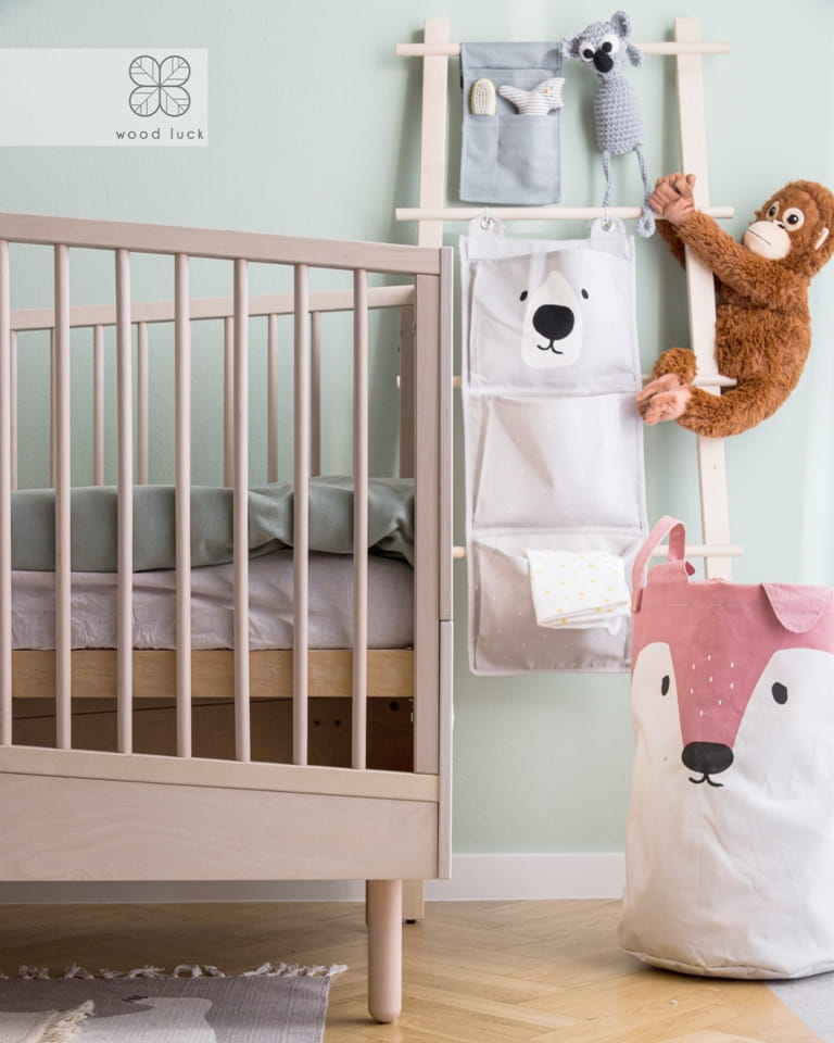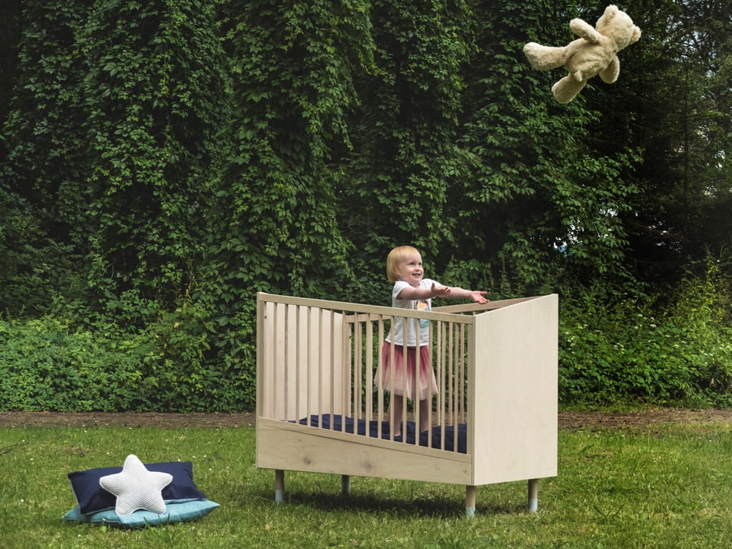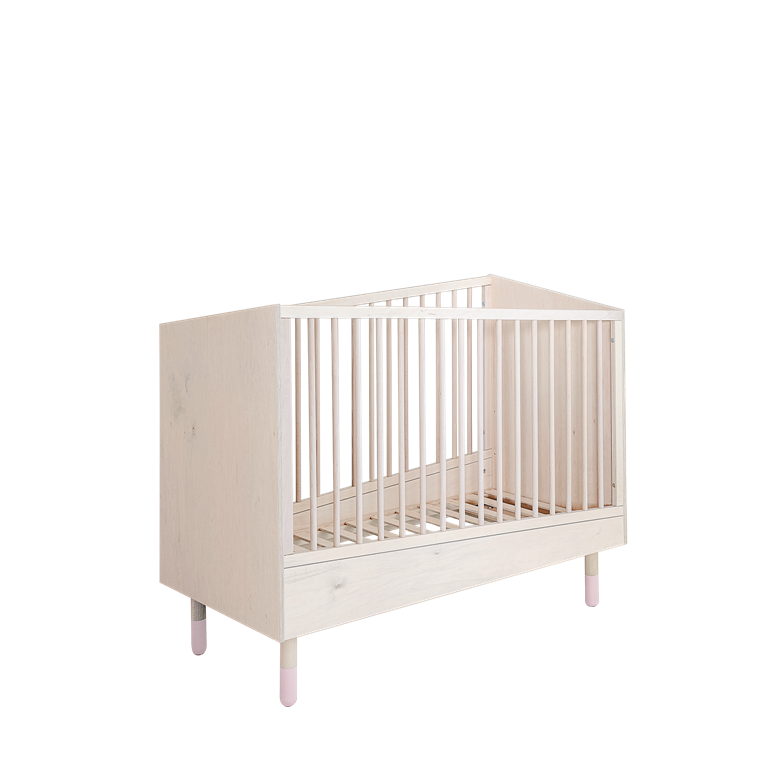 Łóżeczko dostępne jest w czterech kombinacjach kolorystycznych: z dodatkiem pudrowego różu, pudrowego niebieskiego, białego oraz w kolorze naturalnym. Łóżeczko posiada 3 poziomy regulacji materaca, dodatkowo jedna z ramek bocznych posiada 3 wyjmowane szczebelki aby umożliwić już starszemu dziecku samodzielne wychodzenie z łóżeczka. Łóżeczko rośnie razem z dzieckiem to znaczy, że wyposażone jest w dodatkowe listwy boczne, które umożliwiają konwersję na łóżko dla starszego dziecka. Do łóżeczka pasuje materac o wymiarach 70x140 cm.